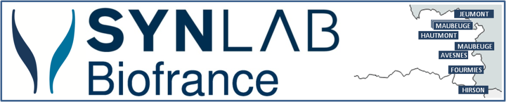 SYNLAB Biofrance, SELAS au capital de 1 200 046.00 Euros, immatriculée sous le n° 314 818 600 au RCS Valenciennes, et autorisée sous le n°59-147.